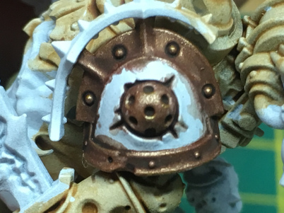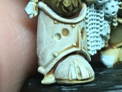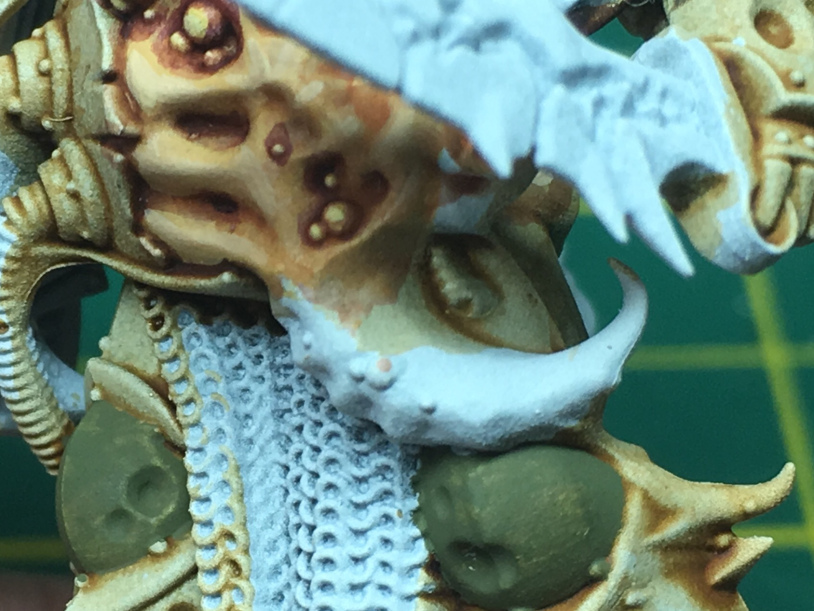 - Roughly paint the base coat with a mix of white and Citadel Ushabti Bone