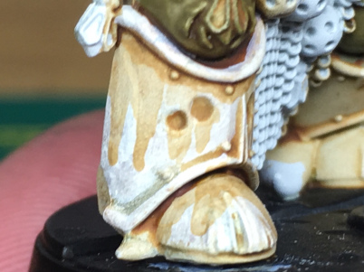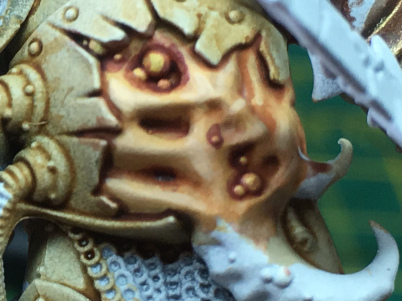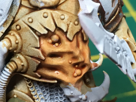 - Wash of Reikland Fleshshade/Seraphim Sepia shade.