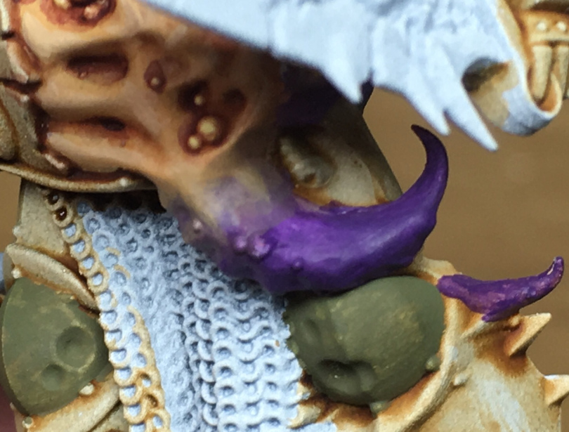Tentacles grow on Death Guard plague marines like leaves grow on trees, and to give them more colour, I paint them similar to the Purple Ruptures featured in the first part of this series.