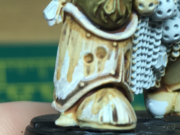 - Apply Seraphim Sepia so that it is running from the top of armour plates and from any dents or damage.