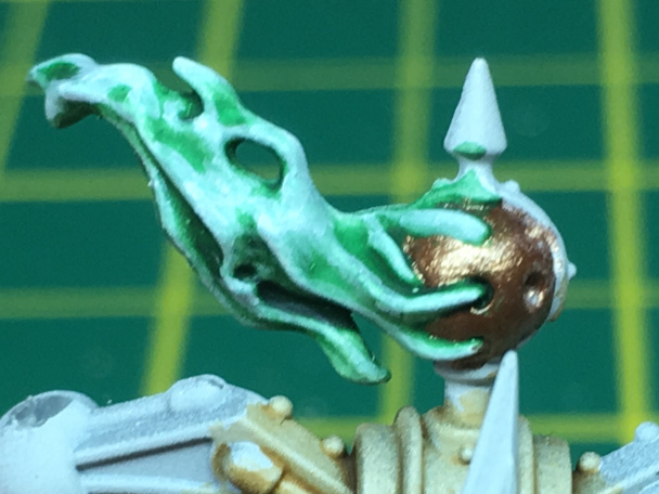- Add Citadel technical paint Nihilakh Oxide to add some oxidation to the trim.