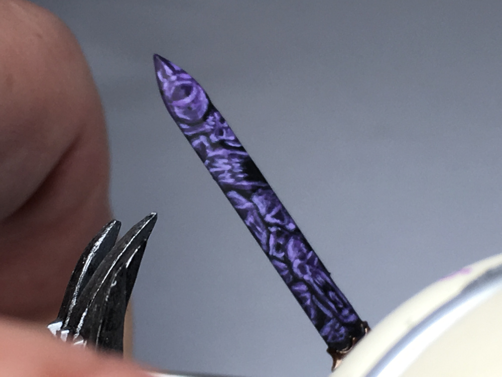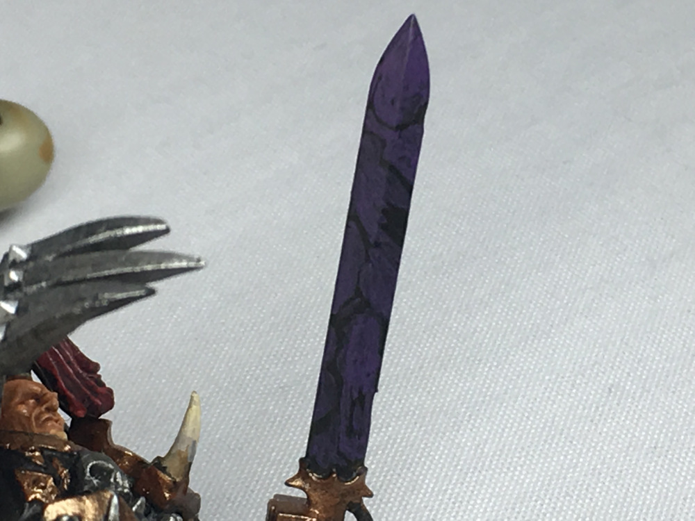As I didn’t have the metal Drach’nyen demon sword, I decided to use one of the huge Grey Knight two-handed swords and freehand some demons onto them.